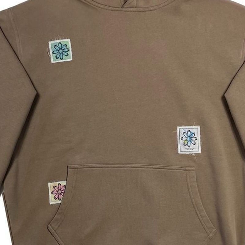 フロント、バック全体に "FLOWERS" グラフィックの Woven labels が散りばめられています。