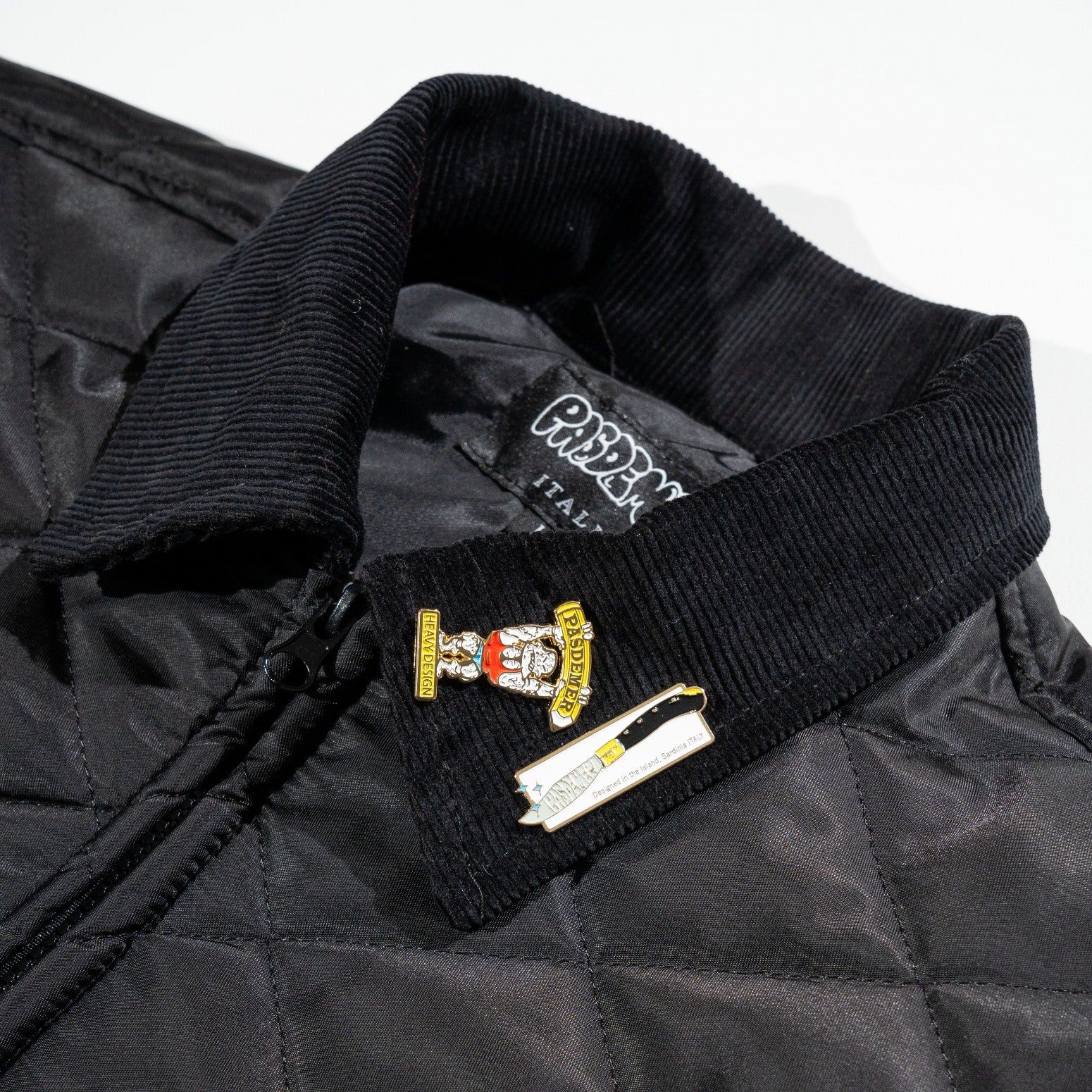 ボディには高密度なナイロン、襟部分には同色のコーデュロイ素材を使用しています。